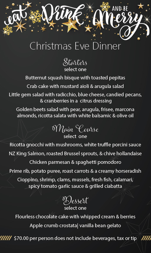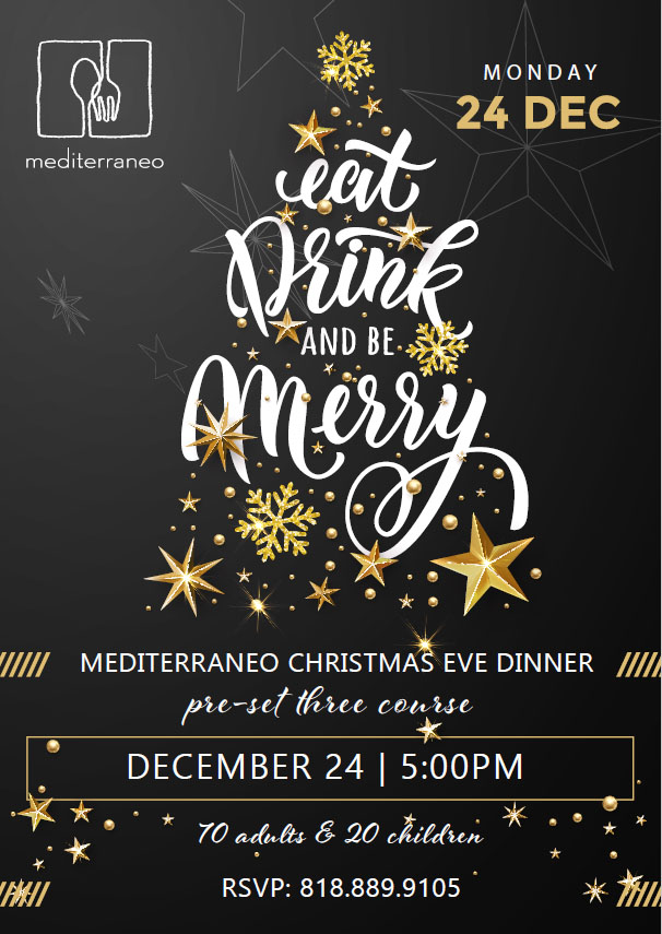 MONDAY | December 24, 2018 | 5:00PM | Mediterraneo Christmas Eve Dinner